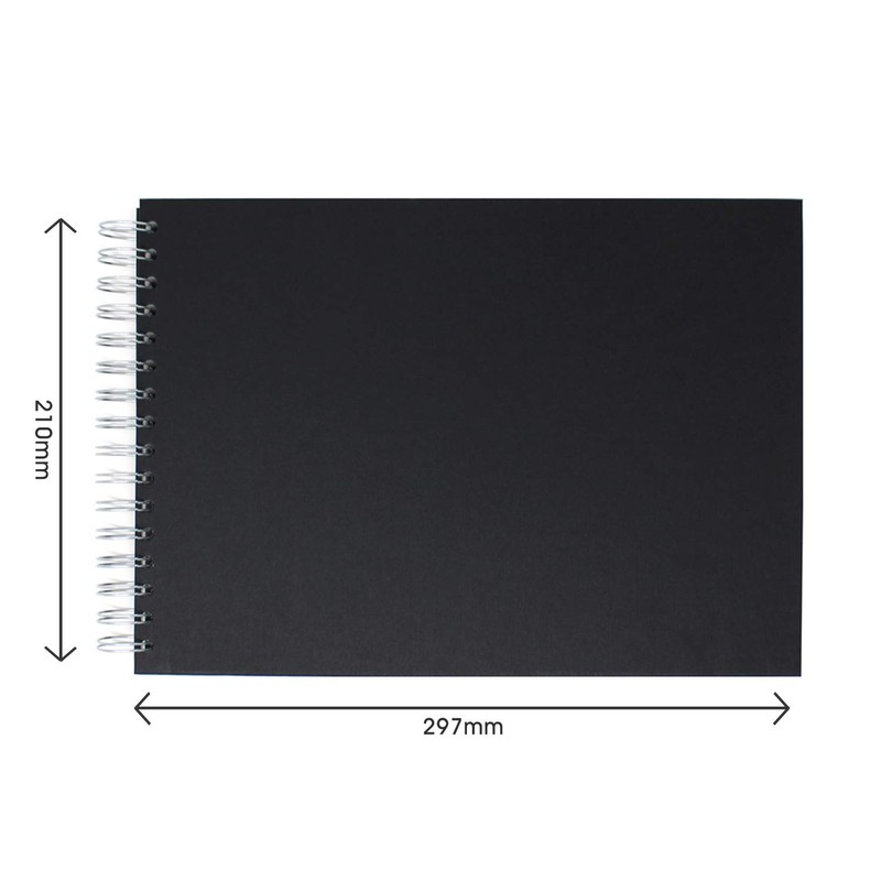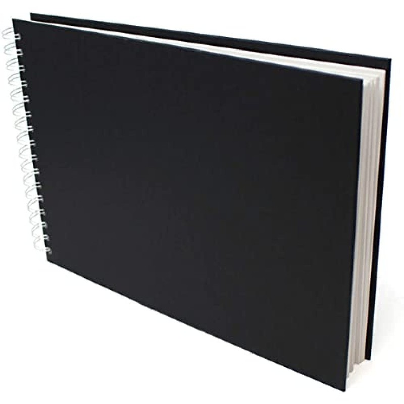 Artway Studio – Spiral Bound A4 Sketchbook – Landscape - 96 Sides/48 Pages of 170gsm Cartridge Paper – Black Hardback Sketchbook