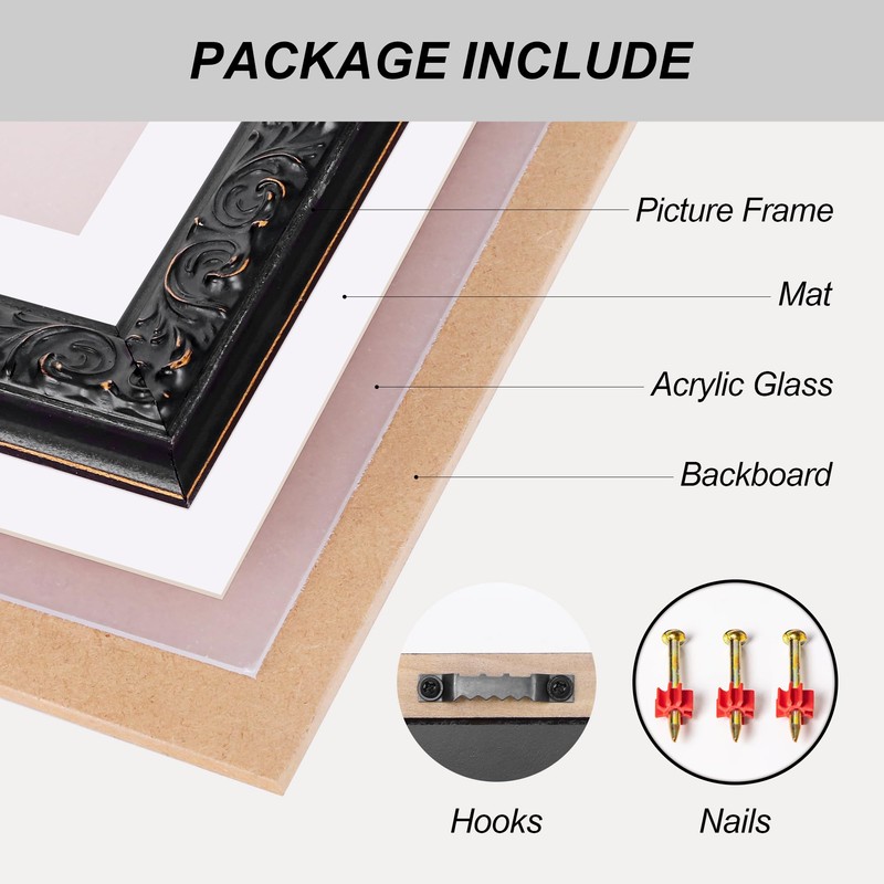 • [ Easy to Use, Ready to Hang ]: This is a finished frame, with no assembly required. You just need to place your artwork/photo into the frame and secure it. [💡 WARM TIP: Needs to remove the protective film before using the acrylic glass.]