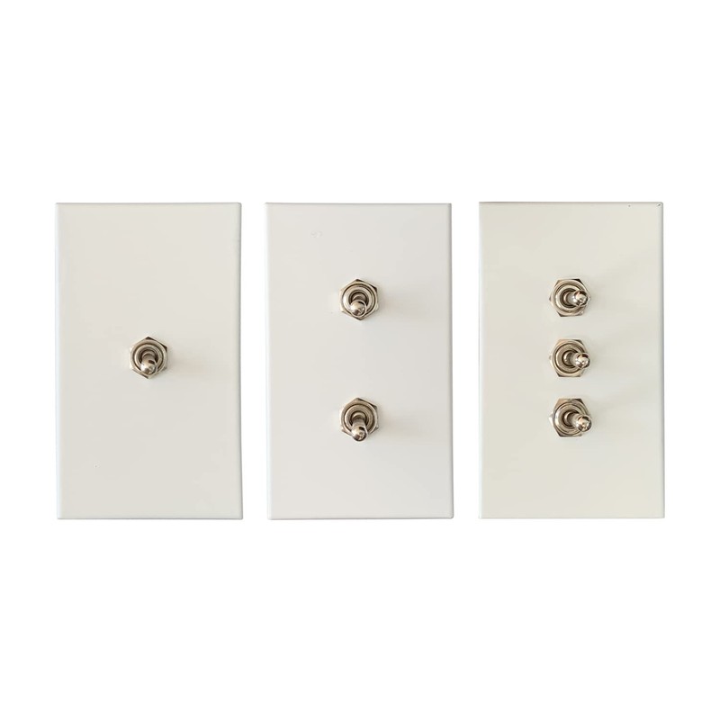 ARUASTUDIO Aruastudio Retro Interior Light Switch ON-Off Set, Switch Plate, Toggle Switch 15A, 250V, AC, 2Pin (White 003 Silver)