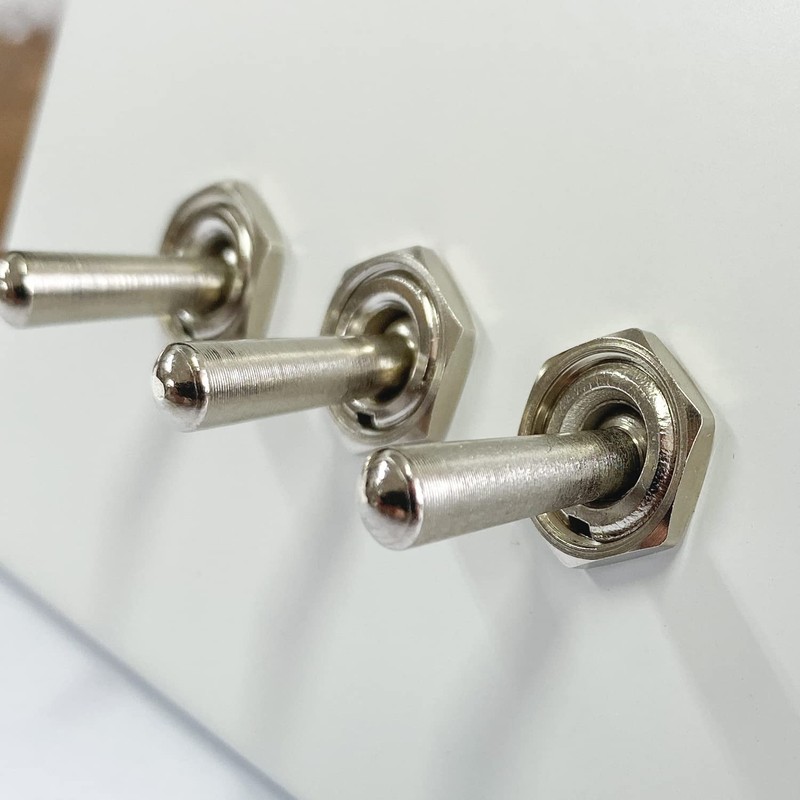 - ◆ Toggle switch set is made of high-quality materials, including a well-made metal plate. Antique gold-colored toggle switch fits a modern style.