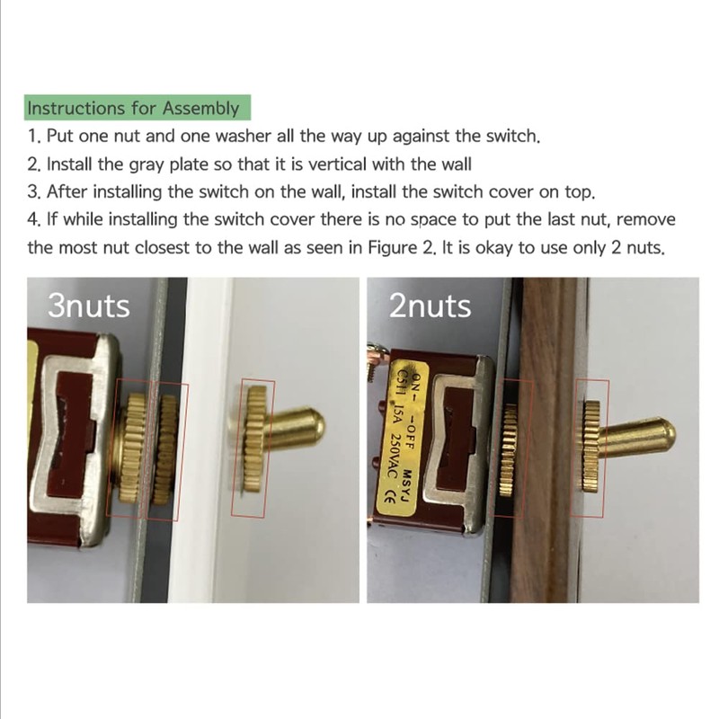 - ◆ Toggle switch set is made of high-quality materials, including a well-made metal plate. Antique gold-colored toggle switch fits a modern style.