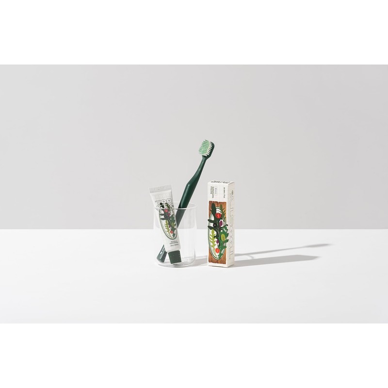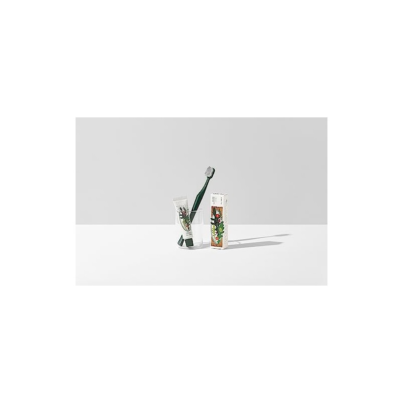 - Arugula flavoured toothpaste, refreshing effect and whitening and caries inhibiting properties.