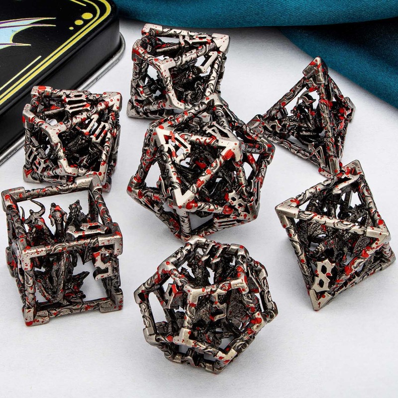ARUOHHA Hollow DND Dice Set Blood Spatter 5-Headed Dragon D and D Dice with Gift Box, Dungeons and Dragons Role Playing Games 7PCS Metal Polyhedral Dice RPG D&D Dice Set D20 D12 D10 D8 D6 D4