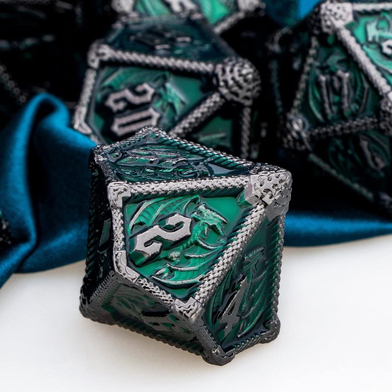 ARUOHHA Metal DND Dice Black Green Dragons Dice Set with Gift Box, Role Playing Game D&D Dice Dungeons and Dragons Polyhedral Dice RPG D and D Dice D20 D12 D10 D8 D6 D4