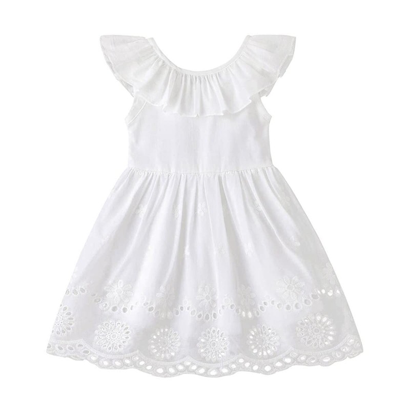 Aruzig Toddler Baby Girls Eyelet Dress White Ruffle Sleeveless Tunic Sundress Kids Casual Beach Party Clothes (White Embroidered Dress, 18-24 Months)
