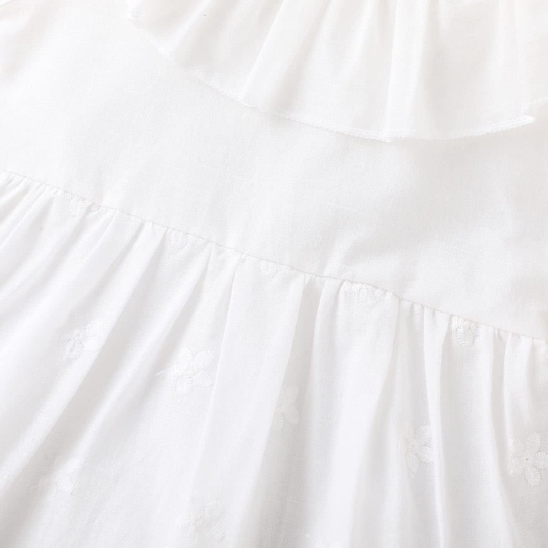 - Fashion Design:Ruffled collar,sleeveless,flower embroidery,off white dresses,Simple stylish and classic,The contains a layer of lining.It is soft and comfortable to wear,makes your little girls look pure and beautiful.