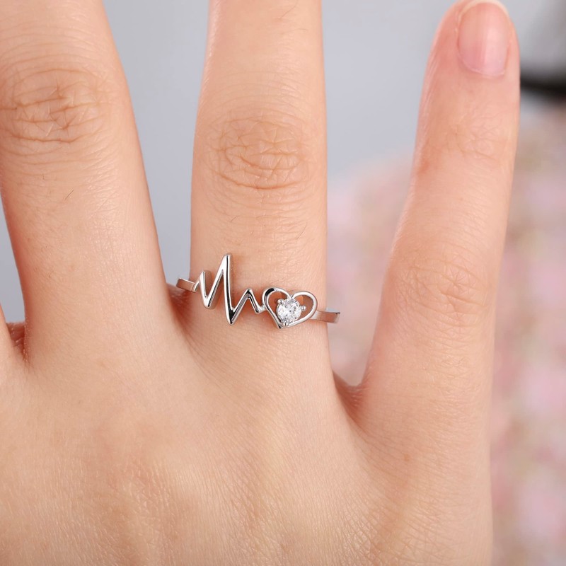 - Workmanship: 2mm gorgeous and elegant solid 925 sterling silver engagement ring features a highly polished surface. 1pc of 5A grade round-cut cubic zirconia heartbeat electrocardiogram wave design, dome Slim comfortable