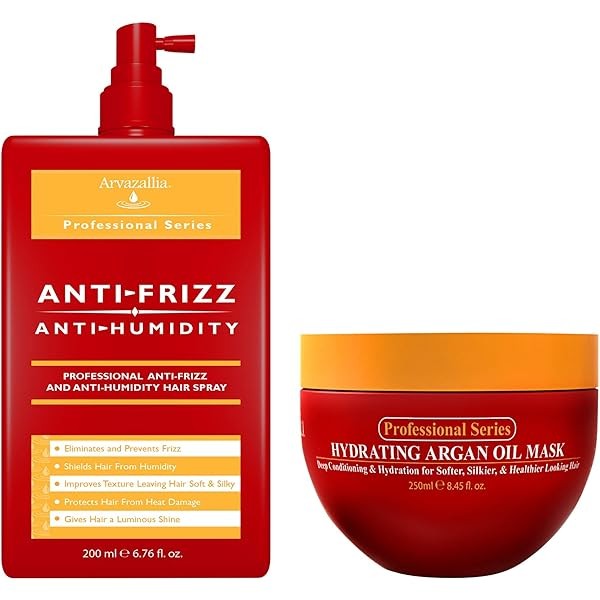 Arvazallia Hydrating Argan Oil Hair Mask and Anti-Frizz Anti-Humidity Spray Treatment Bundle - Professional Grade Deep Conditioning, Frizz Control, and Humidity Shield