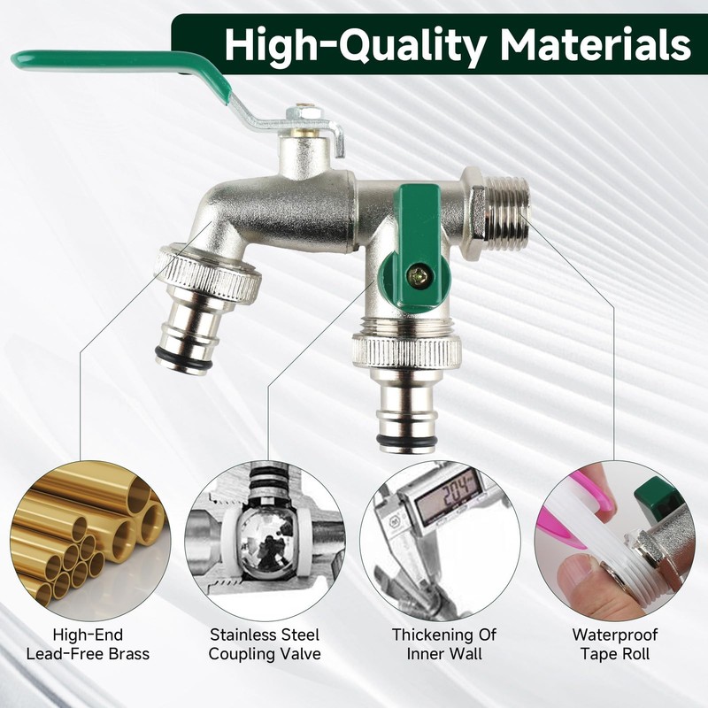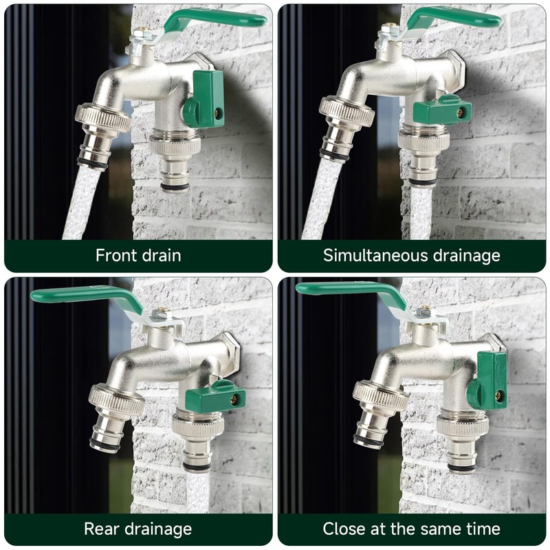 - 【Doppelte Auslaufdesign】Dieser Garten Doppelauslauf Wasserhahn kann gleichzeitig zwei Wasserschläuche anschließen. Somit können Sie innen wie außen im Garten mehrere Schlauchanschlüsse, gleichzeitig anschließen, um die Arbeitseffizienz zu verbessern