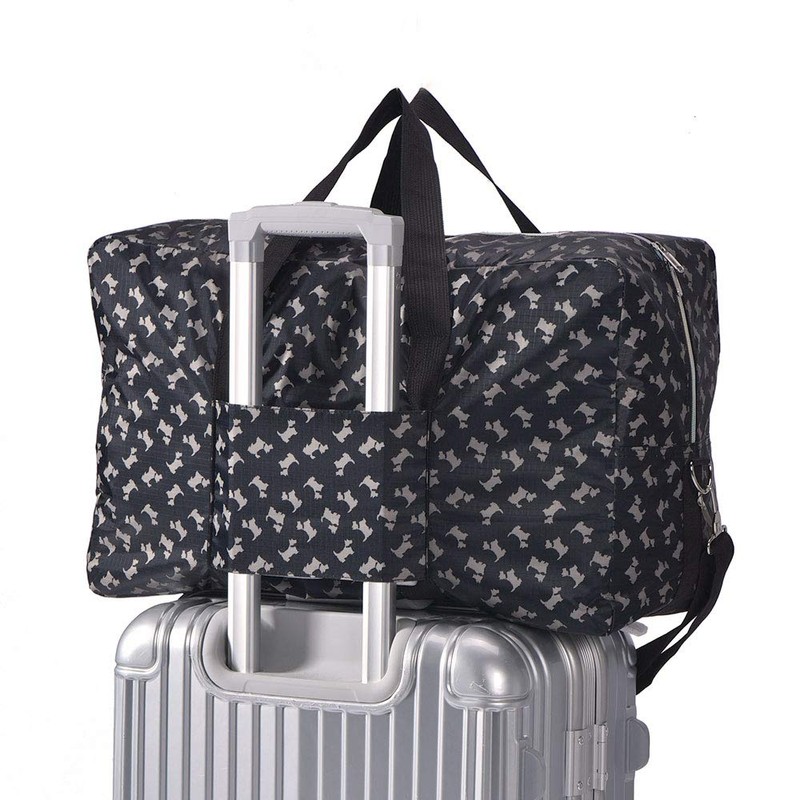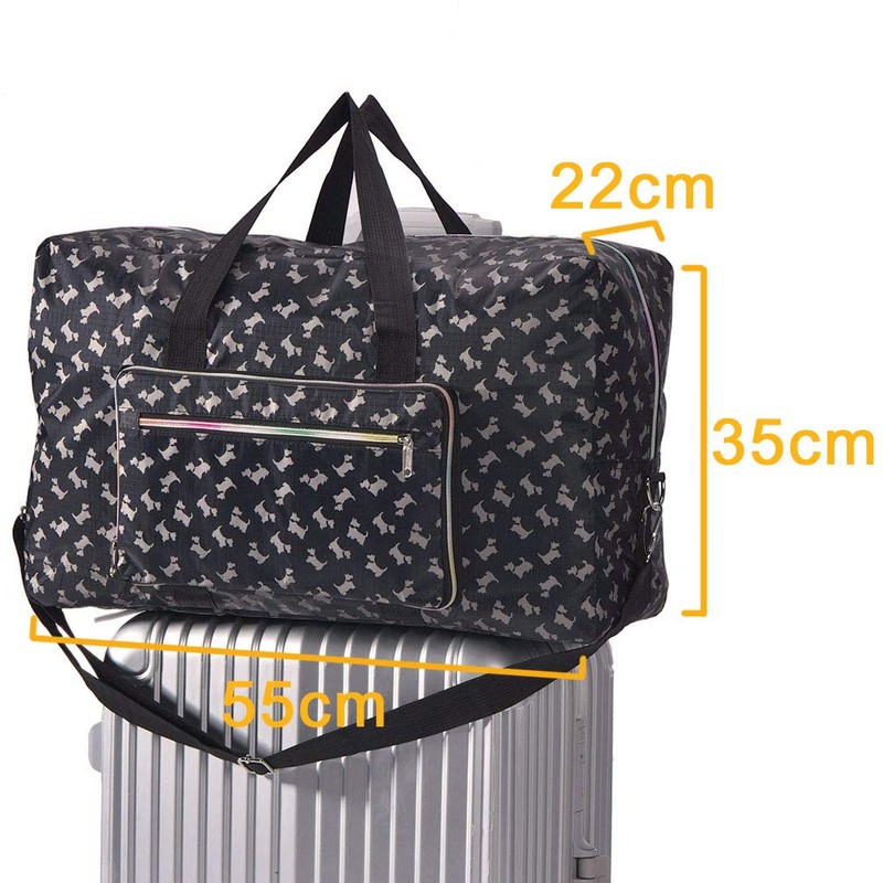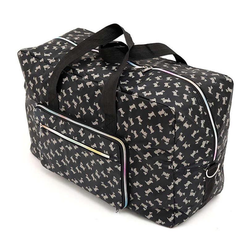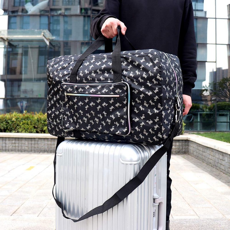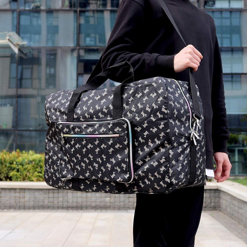 Arxus Large Foldable Duffel Tote Carry on Weekend Overnight Travel Bag Over Luggage with Shoulder Strap (Black Dog)
