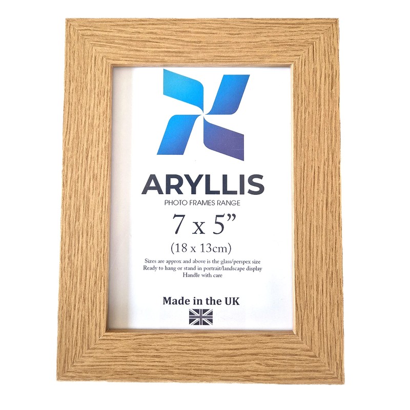Aryllis 7x5 Photo Frame, French Oak, Free Standing and Wall Hanging Picture Frame with Perspex Front