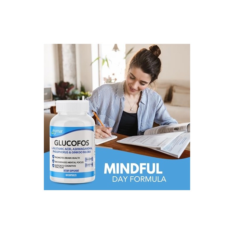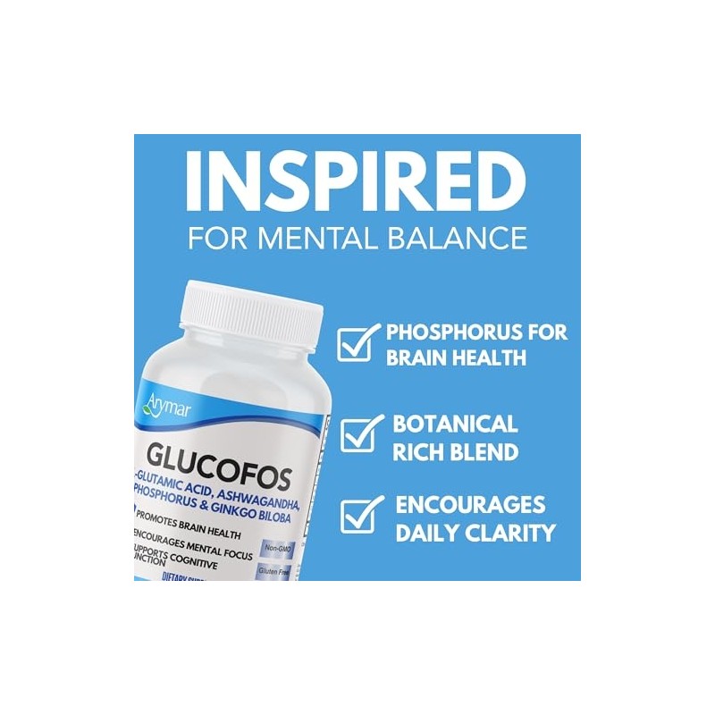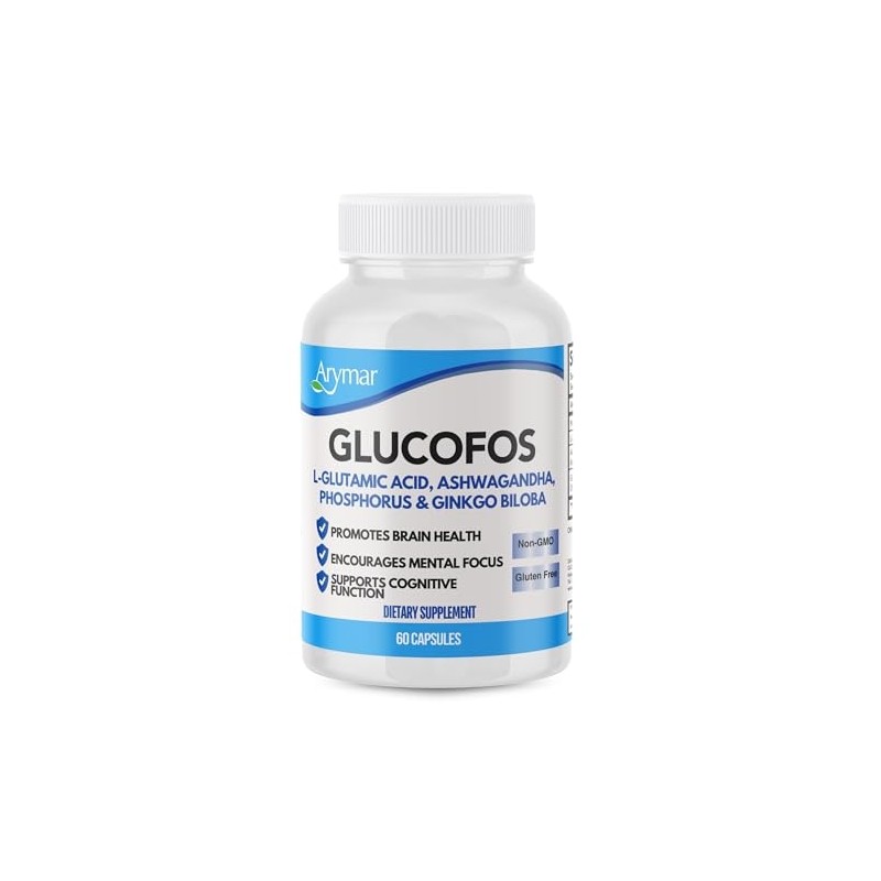 Arymar Glucofos L-Glutamic Acid, Ashwagandha, Ginkgo Biloba & Phosphorus Brain & Nerve Support Supplement 60 Capsules