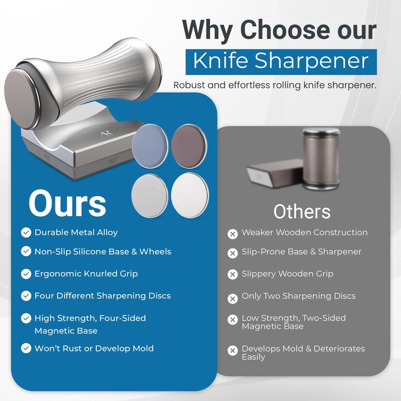 - Advanced Rolling Sharpening System: Experience consistent, professional-grade sharpening with our innovative rolling magnetic design for kitchen knives, scissors, and other cutting tools.