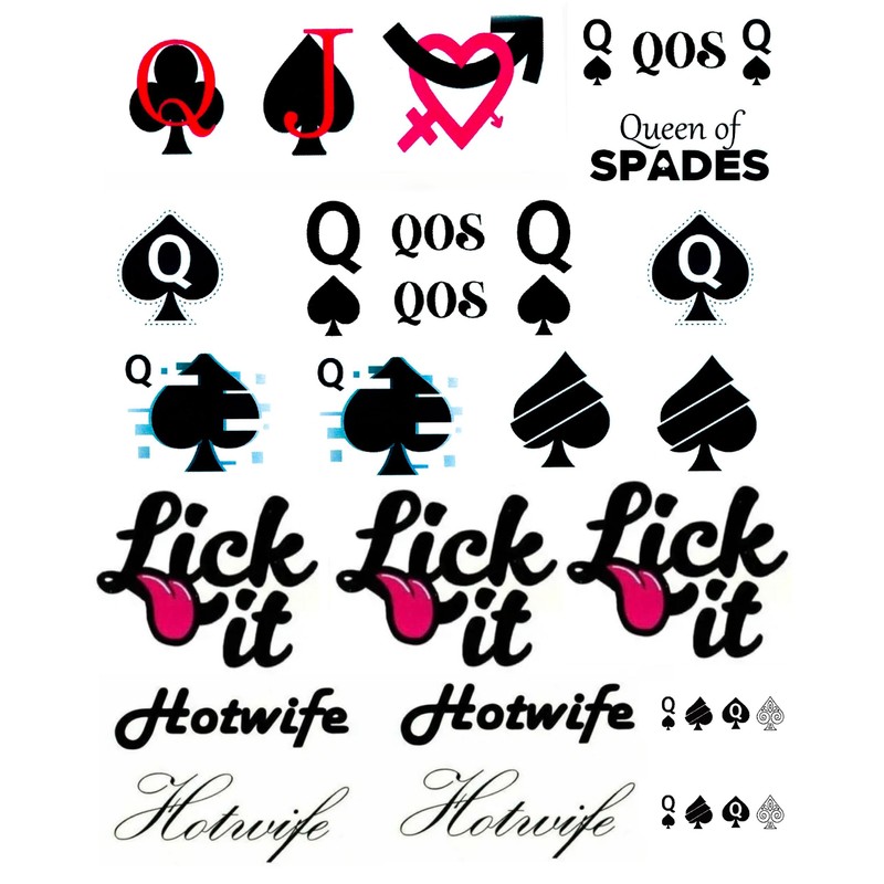 4 Sheets BBC Queen of Spades Temporary Tattoo Sticker Total 81(15X21cm) QoS Hardcore Words Phrases