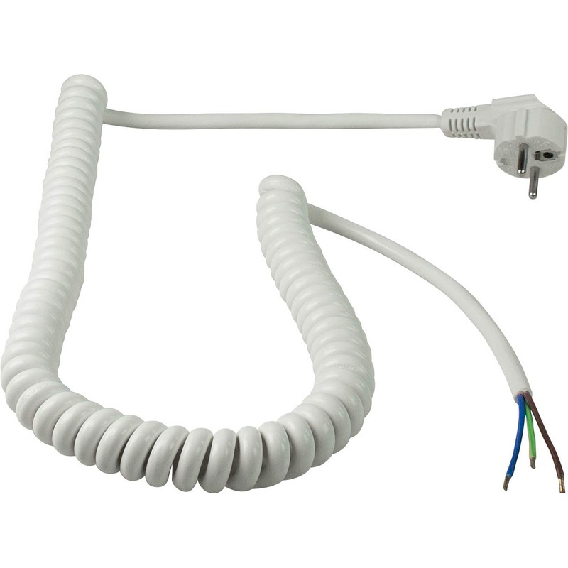 as - Schwabe 70423 Spiral Cable Connection Cable 1 m Basic Length to Approx. 2.5 m Connection Cable H05VV-F 3G1.5 230 V, 16 A - Earthing Contact Angle Plug, End 60 mm Stripped, White, IP20
