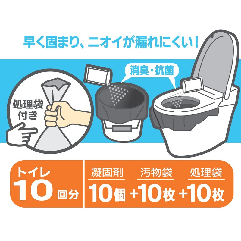 Asahi Denki Kasei ABO-2710A Emergency Toilet, 10 Servings, Made in Japan