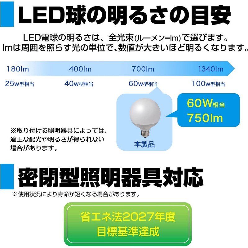 Asahi Electric Elpa (ELPA) LED Bulb, Ball Bulb, G95 (E26 Base, 60 W Shape, White)