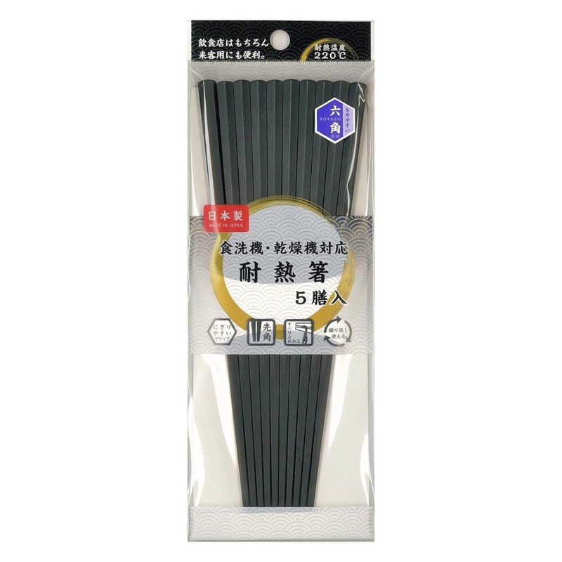 Asahi Koyo Hexagonal Chopsticks Heat Resistant, Commercial Use, Black, 9.0 inches (22.8 cm), Anti-slip, Easy to Hold, Dishwasher Safe, Dryer Safe, Made in Japan, 5 Pairs