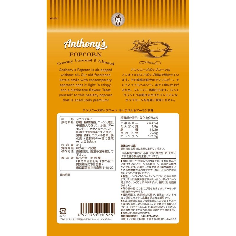 Asahi Seika Anthony Popcorn Caramel & Almond Flavor, 1.6 oz (45 g) x 3 Bags