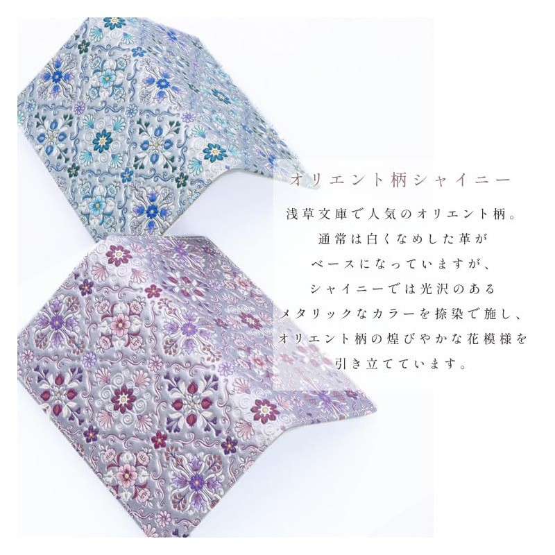 Asakusa Bunko L-Shaped Zipper Long Wallet Orient Shiny Pattern Slim Wallet Wallet Yuzen Dyeing Leather Edo Komon Metallic, blue