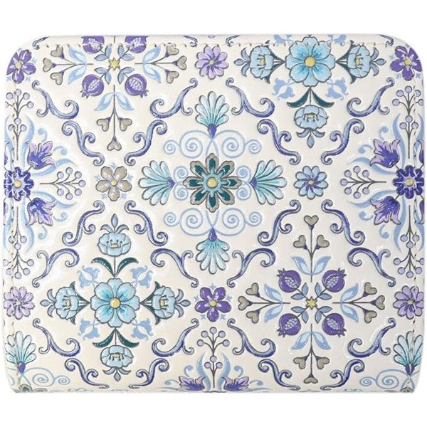 Asakusa Bunko Yuzen dyed bifold wallet L-shaped zipper Orient pattern Edo Komon wallet bifold folding wallet mini wallet Blue