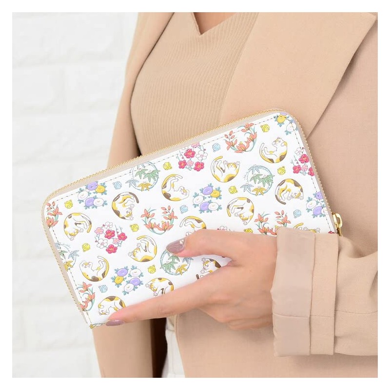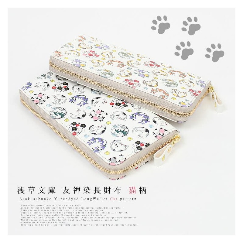 [Asakusa Bunko] Yuzen Dyed Long Wallet, Cat Cat Shikunko Pattern, Wallet, Round Zipper, Bunko Leather, Blunt Nibiro - Nibi Iro