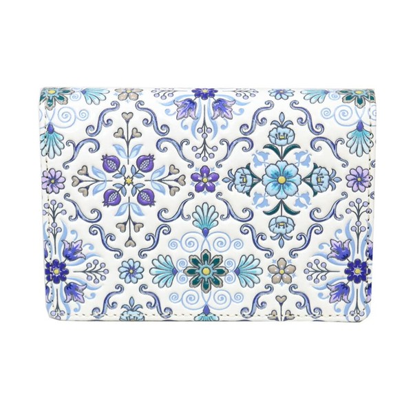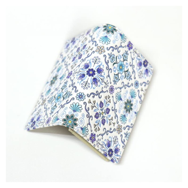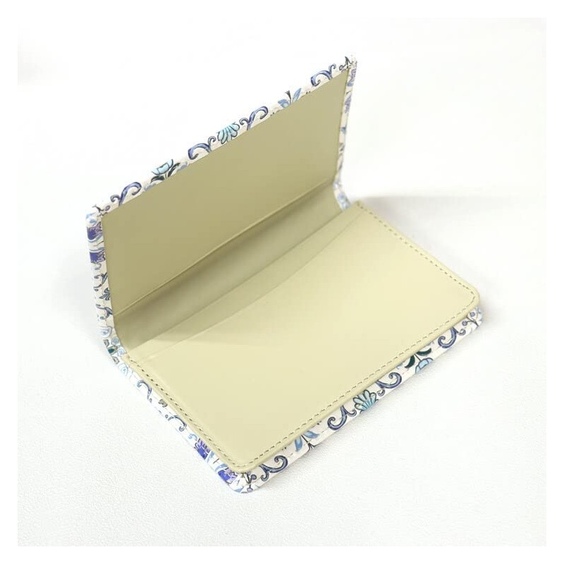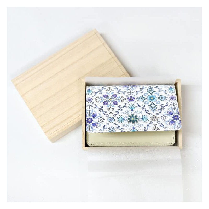 [Asakusa Bunko] Yuzen Dyeing Card Case, Business Card Holder, Orient Pattern, Genuine Leather, Edo Komon, blue