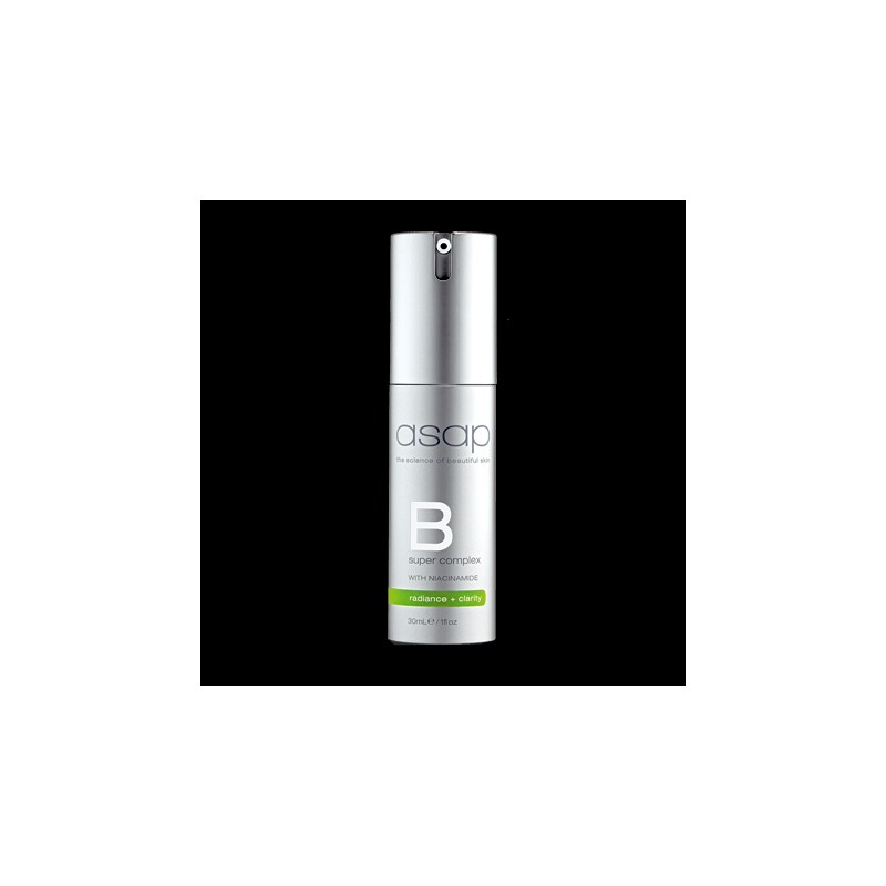 The asap Super B Complex is a fast-acting serum that contains a high concentration of Niacinamide (B3) to boost collagen production and rejuvenate the skin. Crosslinked Hyaluronic Acid provides 5 times the moisturising power and 50 times the moisture retaining properties of traditional Hyaluronic Acid. With B5, B9 and other powerful, active ingredients, this serum increases skin hydration and helps visibly reduce signs of ageing. The asap Radiance Serum 30ml contains White Tea, Bilberry and Mulberry to provide antioxidant skin benefits and protect the skin from free radical damage, resulting in noticeably smoother, more refined and hydrated skin. A new generation of brightening substances derived from botanical extracts delivers powerful brightening effects and a reduction in the appearance of hyperpigmentation.