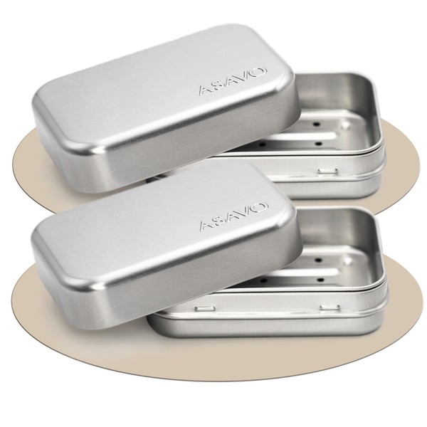 ASAVO 2 x Soap Box Metal Aluminium 9.3 x 6.0 x 3.2 cm (Inner) Rustproof for Travel Soap Box Soap Container Tin Metal Tin Tin Tin Box 2 Pack