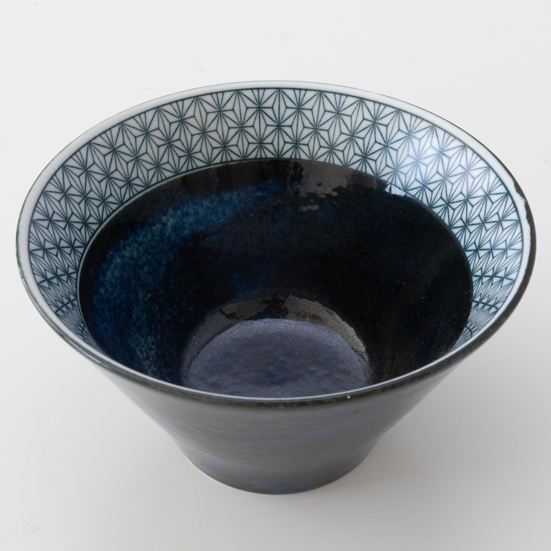 - [A Fusion of Traditional Patterns and Modern Form] Crafted in the heart of Toki, Gifu Prefecture, this medium-sized ceramic bowl blends Japanese artistry with daily functionality. The exterior features a dynamic indigo glaze with natural texturing, while the interior showcases the Asanoha (hemp leaf) motif—symbolizing health and resilience in Japanese culture.