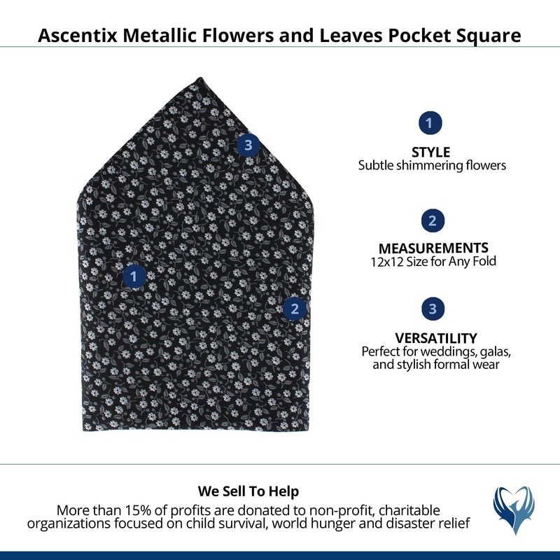 Ascentix Metallic Flowers and Leaves Pocket Square, Black
