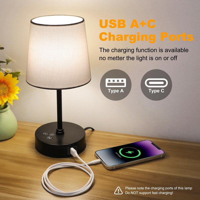 - This bedside Lamp is equipped with 2 usb ports that make it simple to charge devices at your nightstand.