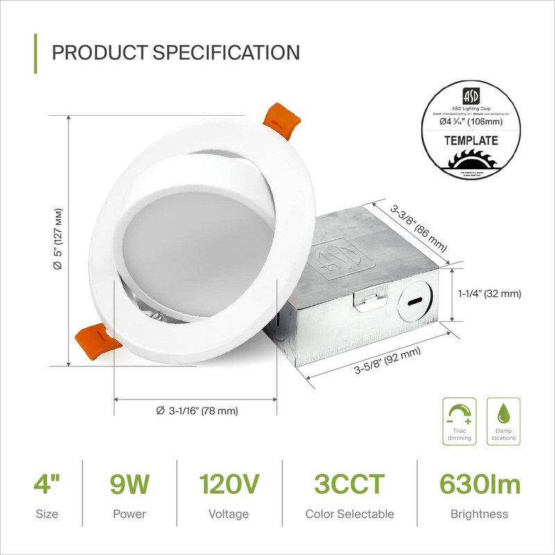- ✅ CERTIFICATION & WARRANTY - ASD provides a 5-year warranty for this rotatable LED recessed light along with ETL and ENERGY STAR certifications to guarantee top-quality products and safety