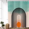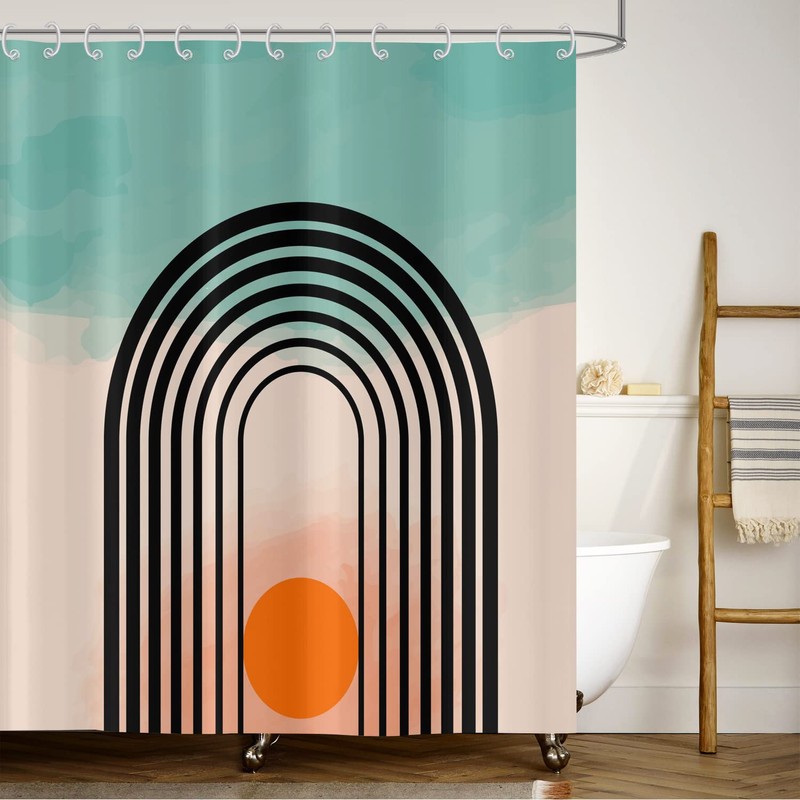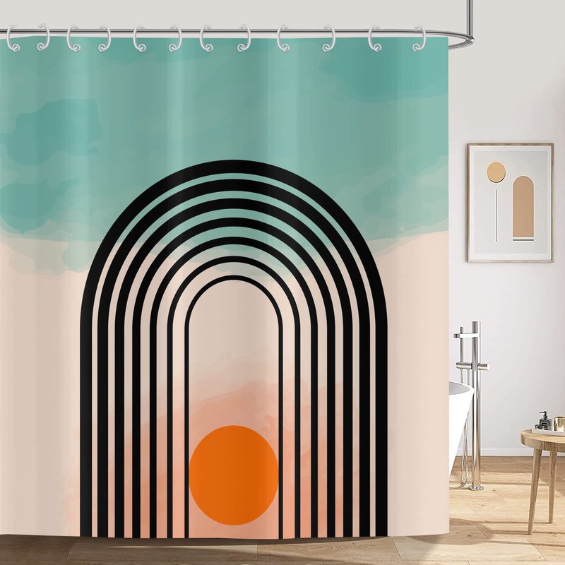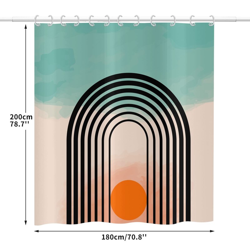 ASDCXZ Boho Shower Curtain 180 x 200 cm, Modern Abstract Art Boho Style Cyan Beige Splicing Orange Sun Line Washable Shower Curtains Textile Waterproof Shower Curtain for Bath with 12 Hooks
