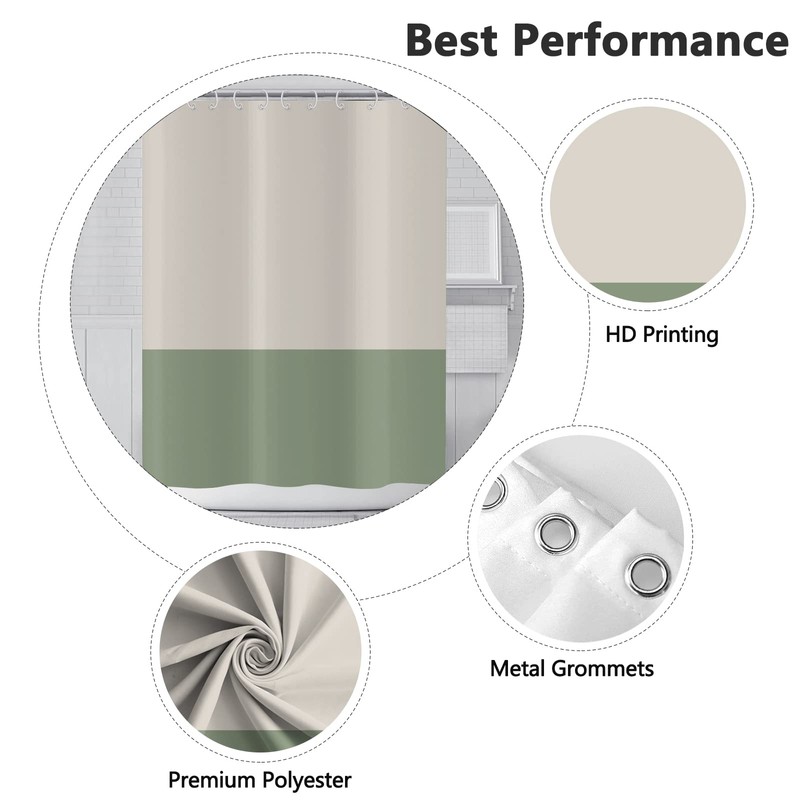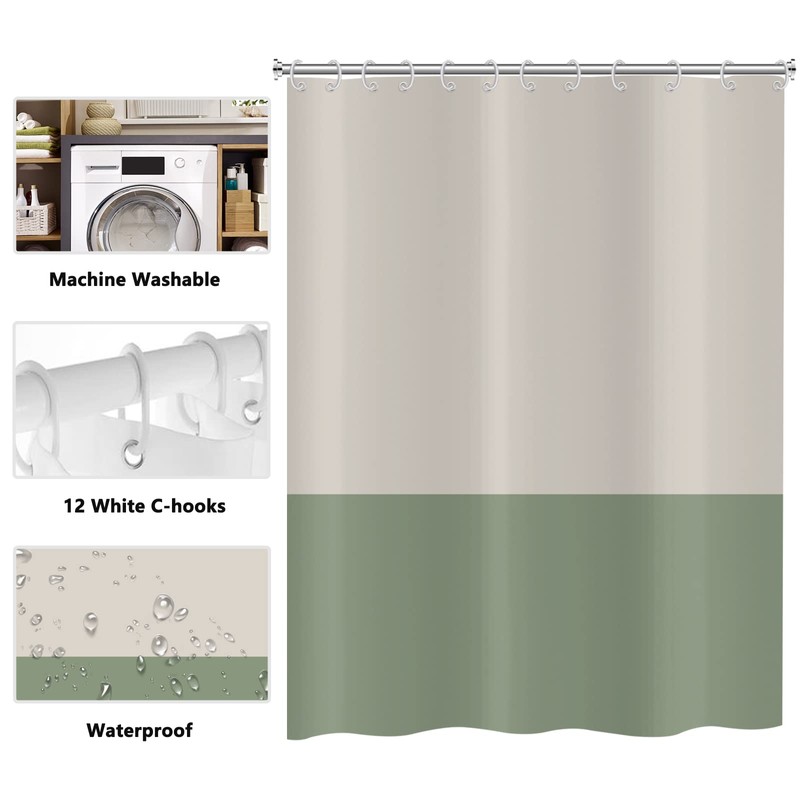 ASDCXZ Shower Curtain Green 180 x 180 cm, Modern Beige Green Splicing Motif Waterproof Textile Bathroom Shower Curtains Washable Polyester Fabric Shower Curtain for Bath with 12 Shower Curtain Hooks