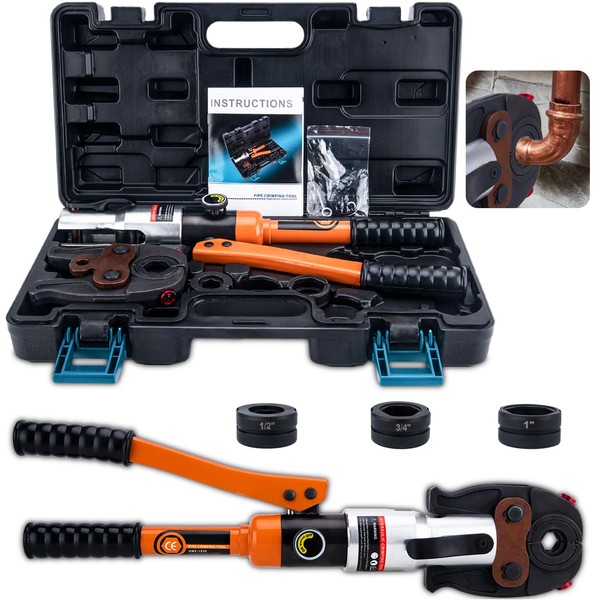 Copper Pipe Crimping Tool, W/ 1/2", 3/4", 1" Jaws, Copper Tube Fittings Hydra...