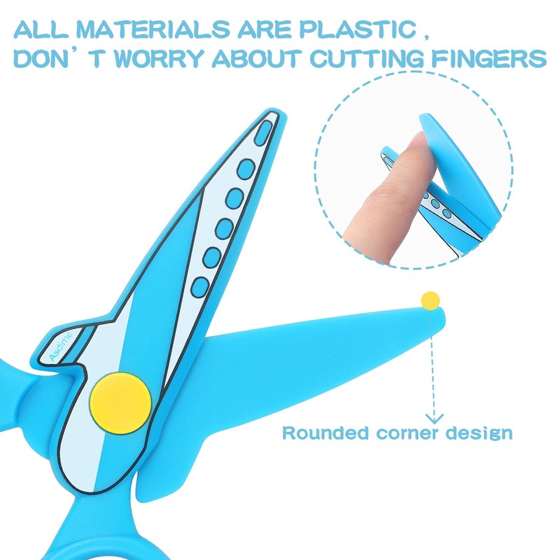 • Safety scissors designed with airplane look.Two different bright color compositions, attract child's attention make them happier when doing crafts.