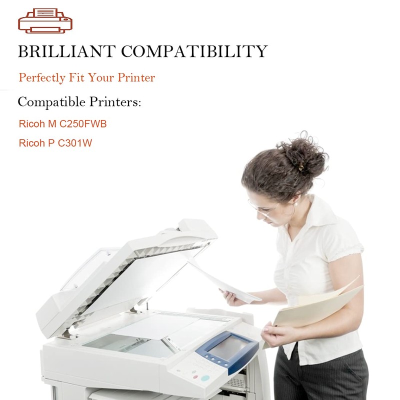 - Compatible Printers - - Suitable for use in Ricoh M C250 C250FW C250FWB, P C300 C300W C301 C301W Printers.