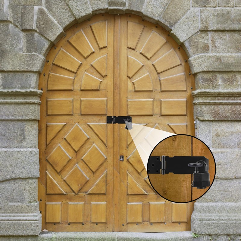 - Enhance Security:The internal structure of the Shed Door Latch Hasp with Padlock is very precise.The interlocking part between lock beam and lock body is very thick, which can effectively resist violent damage and better prevent theft.The shed lock kit with lock and keys can ensure security for your use.
