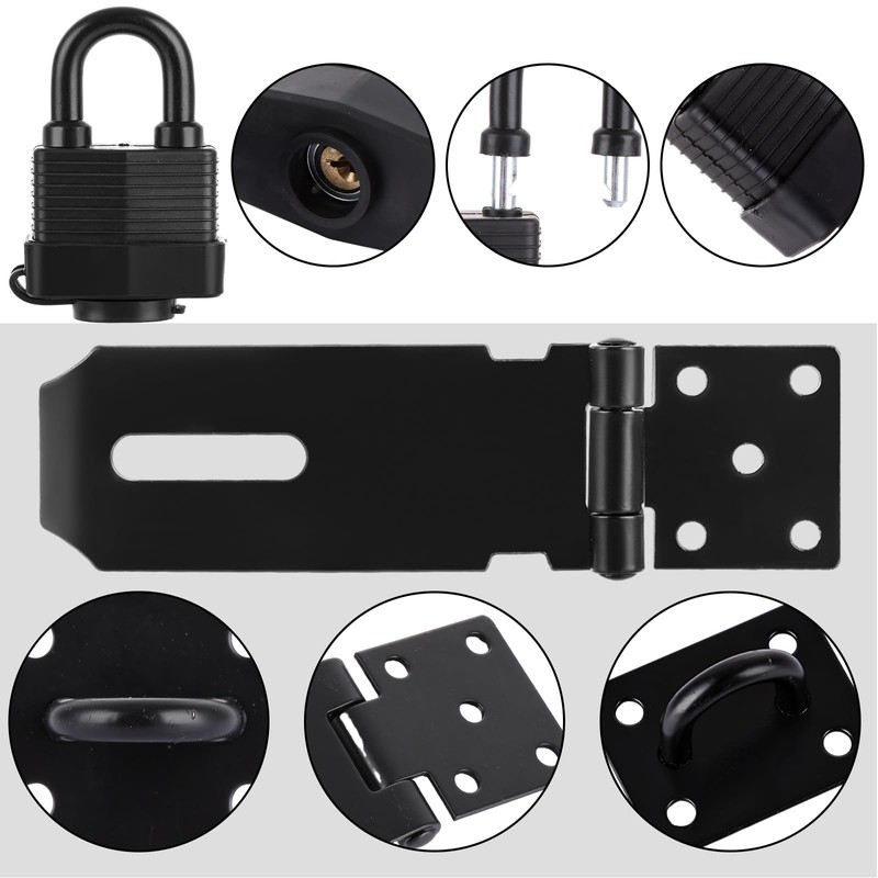ASelected Padlock Hasp Kit, Shed Door Latch Hasp with Padlock and Screws,Heavy Duty Hasp and Staple with Padlock Stainless Steel Door Lock for Bedroom Garden Door Windows Shed Garage Cabinet,Black