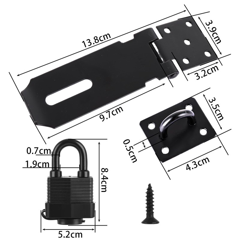 - Package Including:You will receive a set of shed latch( 1 x padlocks, 2 x keys, 1 x padlock hasp,and 9 x screws).The padlock clasp sets can effectively enhance the security of your house.