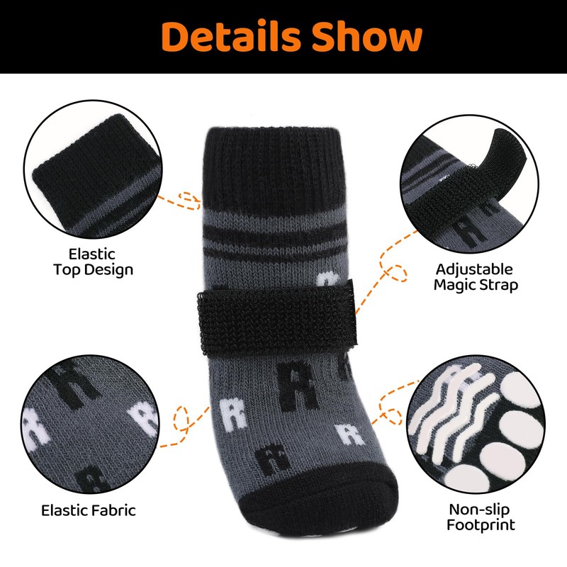 - Anti-Fall Off: The top of the paw socks features a high-elasticity design, which can prevent the socks from falling off. Additionally, we have included an adjustable magic strap, allowing you to freely adjust the socks' elasticity for added security