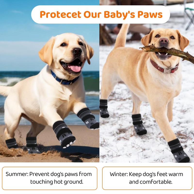 - Multifunctional Paw Protectors: Our anti-slip dog socks offer a strong grip and resist twisting, which prevents slipping on floors. They also help prevent dogs from licking wounds and protect against burns from hot surfaces in summer or frostbite in winter. Additionally, they help prevent dogs from scratching floors, car seats, and sofas