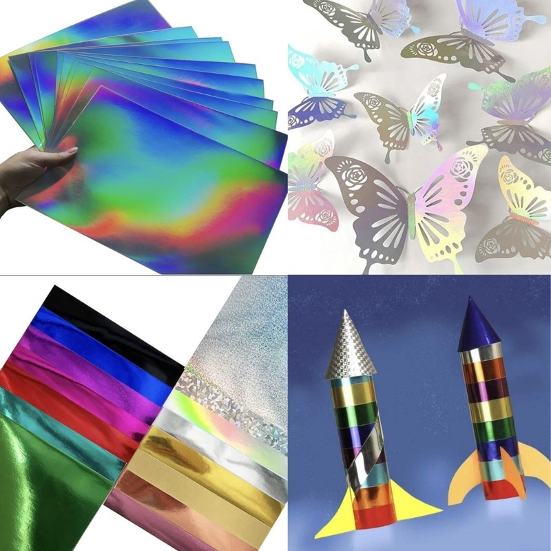 - Material: metallic cardboard with mirror effect of 250 grams. One side with metallic effect, the other matte white.