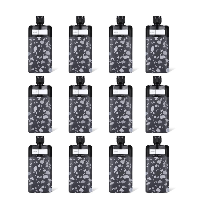 ASEVAT 3 oz Leak Proof Empty Squeeze Pouches, Refillable Travel Size Containers, Portable Liquid Pouches for Travel, Stand Up Pouch,TSA Approved (Black, 12 pack)