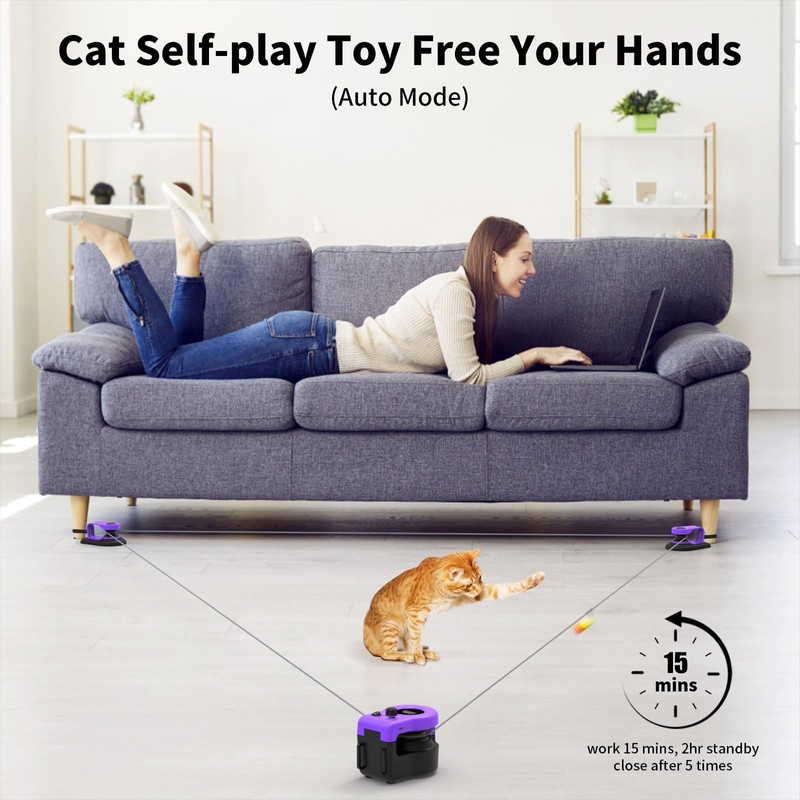 - DIY Multi Play Way: This upgraded interactive cat chase toy is equipped with 3 fixed wire clips so that owners can freely set a variety of running trajectories to stimulate the cat to chase play and help keep your indoor cat physically and mentally active! Support DIY like tying other soft feather replacements to explore more fresh experiences between you and your feline friends.