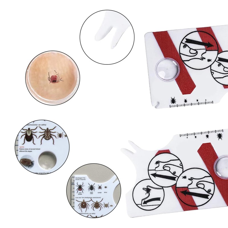 - Wide Applications Since we have equipped our tick card with two different grooves, it provides you with an emergency tool for dealing with large and small ticks. A magnifying glass is also integrated into the card to see how deep the tick marks are inside. The children's tick card can also help you better identify small pests in the coat.