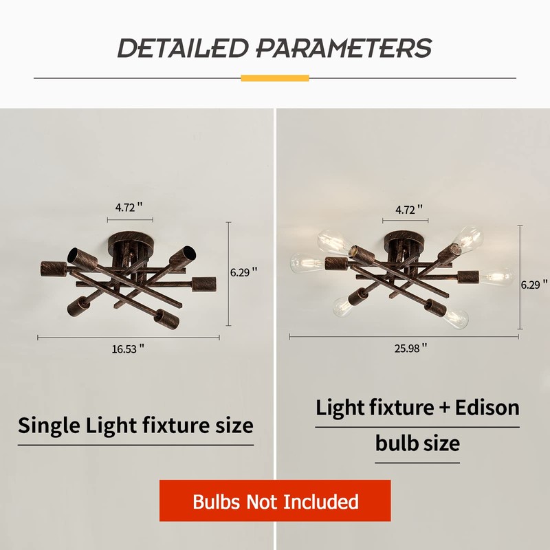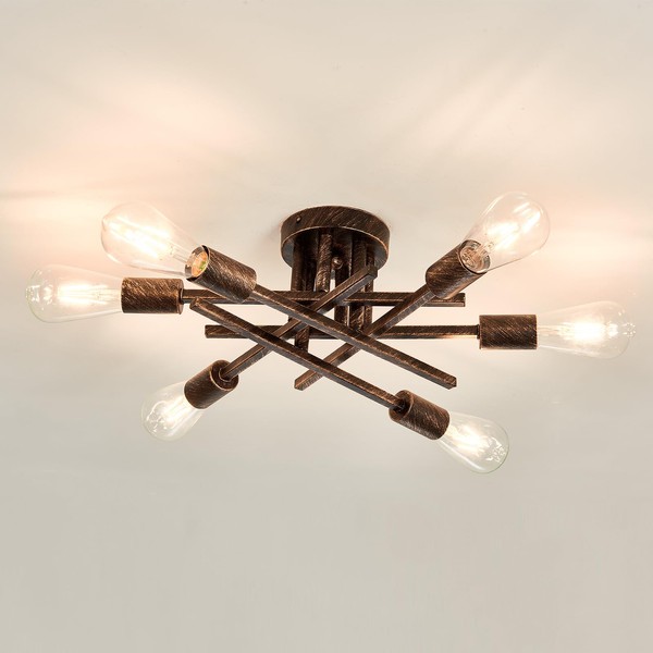 ASGYISA 6-Lights Semi Flush Mount Ceiling Light Fixture Vintage Modern Bronze Matte Sputnik Chandelier Farmhouse Ceiling Lamp for Kitchen Bedroom Dining Room Living Room Entryway.