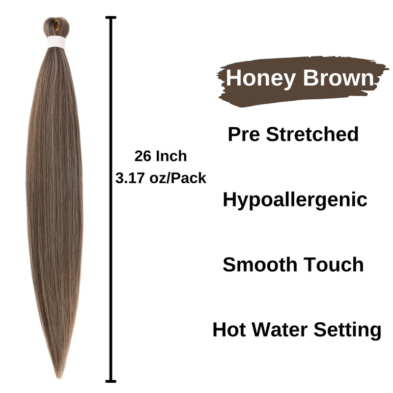 - Honey Brown M4/27/613 Boho Braids Set,Packs of 4 26 Inch Pre Stretched EZ Braids and Pack of 1 24 Inch Curly Deep Wave Braiding Hair,Totaly 5 Packs,Weight 1.10 LB