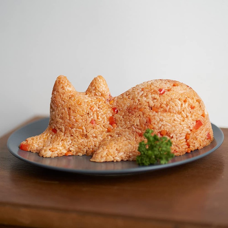 - The cup-shaped cat creates an infinite silhouette of rice, jellie, sand and soil